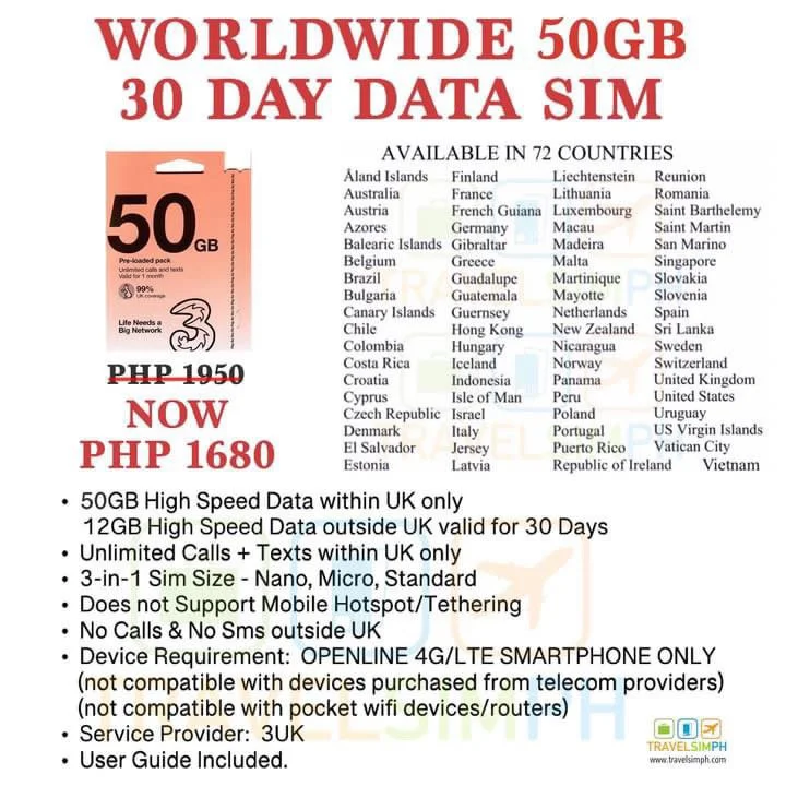 INTERNET SIM WILL BE ORDRED FROM MANILA MAILING FEE IS PHP 200. GIVE ENOUGH TIME FOR MAILING